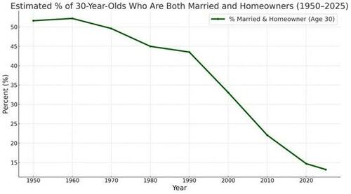 As for opportunity in an economy and society that claims to be a "level playing field," the benchmarks of middle-class security are no longer within reach. The number of 30-year olds who are both married and homeowners has plummeted. Yes, we can quibble about statistics like this, but quibbles are apologists' favorite tools: it's not so bad. But this is just more sugarcoating.