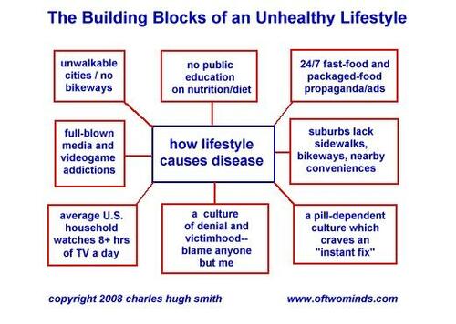 I prepared this chart of our unhealthy lifestyle and built environment in 2008. Nothing has changed. We can try to sugarcoat all these, but sugarcoating doesn't change reality.