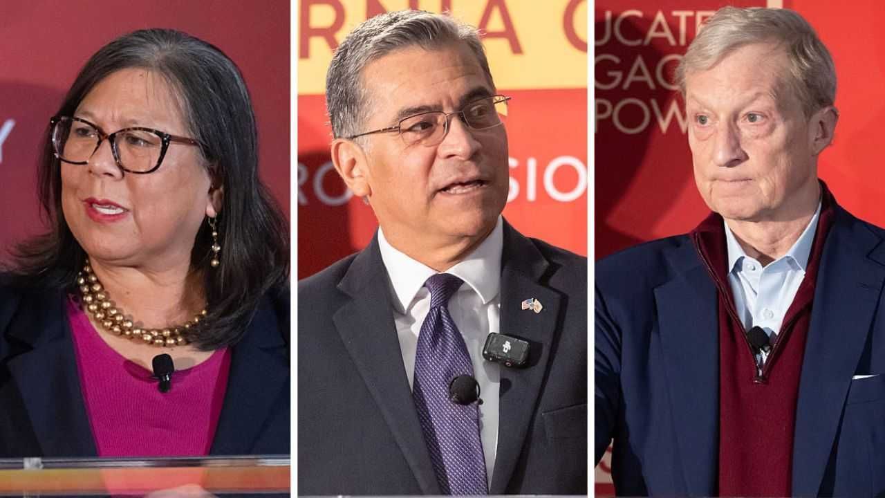Democrats began the race with eight high-profile candidates: former U.S. Health and Human Services Secretary Xavier Becerra, San Jose Mayor Matt Mahan, former U.S. Rep. Katie Porter, climate advocate and businessman Tom Steyer, U.S. Rep. Eric Swalwell, California State Superintendent of Public Instruction Tony Thurmond, former California State Assembly Speaker Antonio Villaraigosa, and former California State Controller Betty Yee.