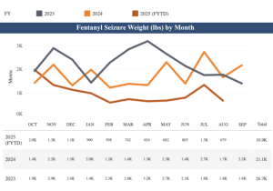 Fentanyl seizures year-over-year at the southern border have been cut roughly in half almost every month since President Donald Trump took office, according to Customs and Border Protection (CBP) data. In June, it was only a 42 percent decrease, but there was a 70 percent drop in May.