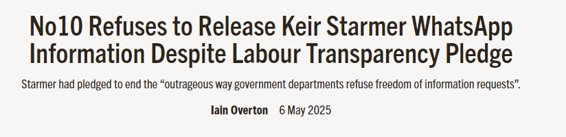 Current UK Prime Minister Keir Starmer’s office refused a FOIA request for his WhatsApp messages, claiming it would be “too costly” to review. This after Labour’s transparency pledges.